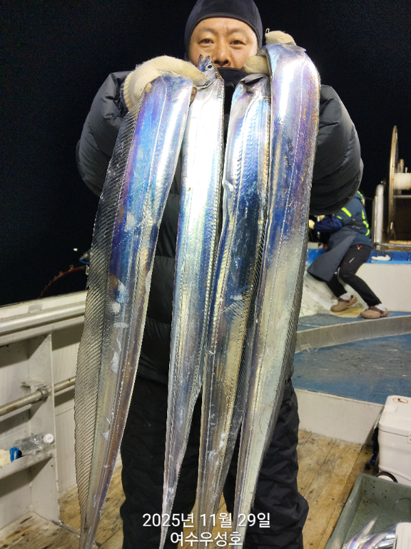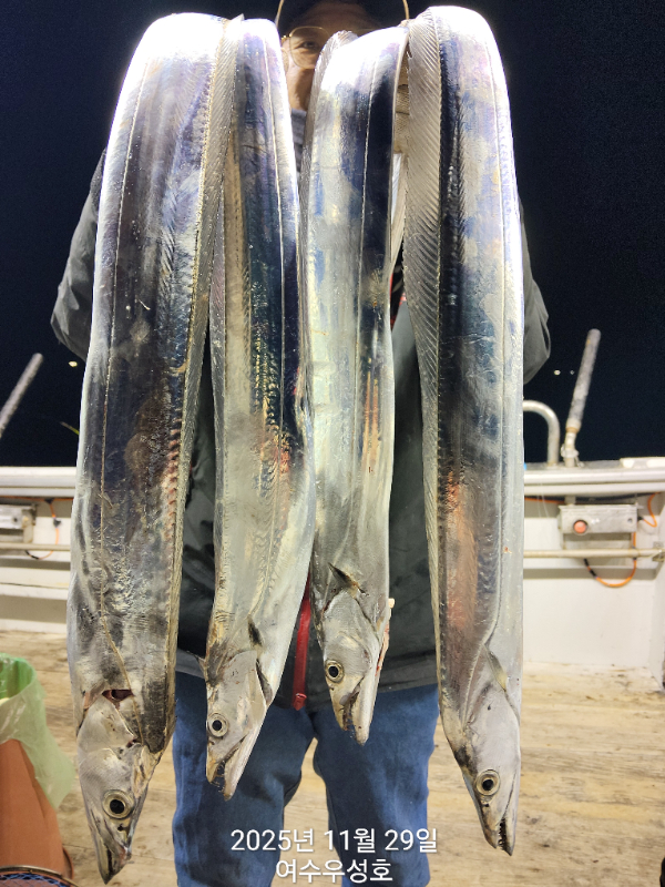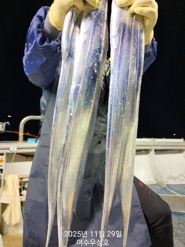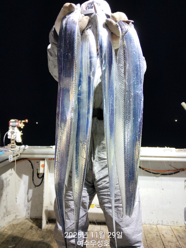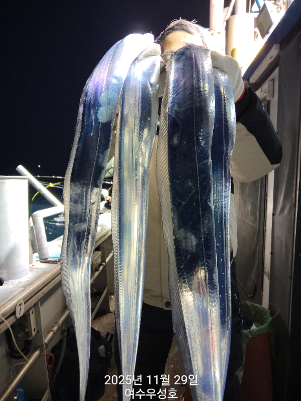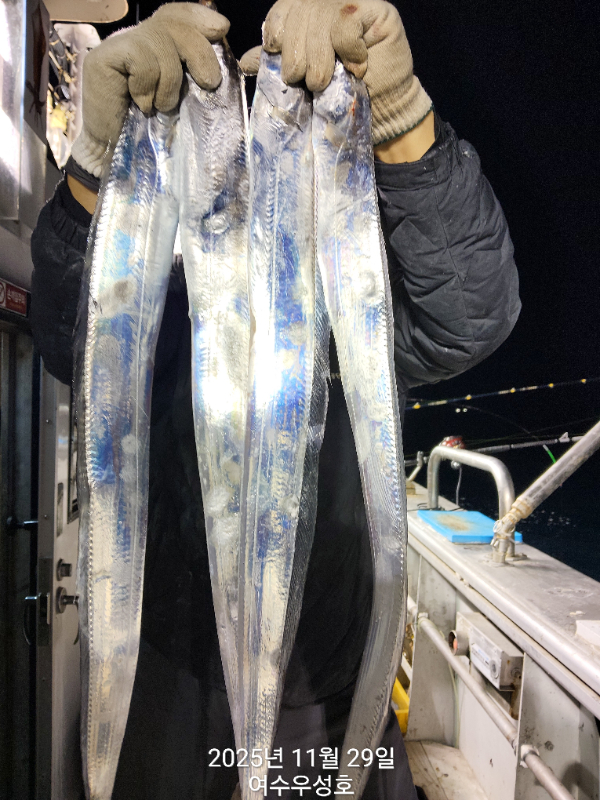 안녕하십니까 여수우성호입니다 11월29일입항 백도대갈치 조황입니다 11월30일 자리여유 많습니다 백도권 안쪽에서만 고기가 나오고 있습니다 바닥가림부터 낮마리로 철수조황입니다 11월30일 백도권 인원관계없이 쿨러가득 잡으로 출조할 조사님 예약받습니다 바다만 허락하면 계속 출조합니다