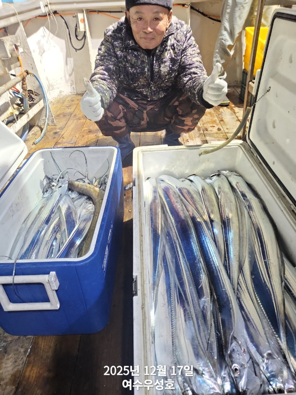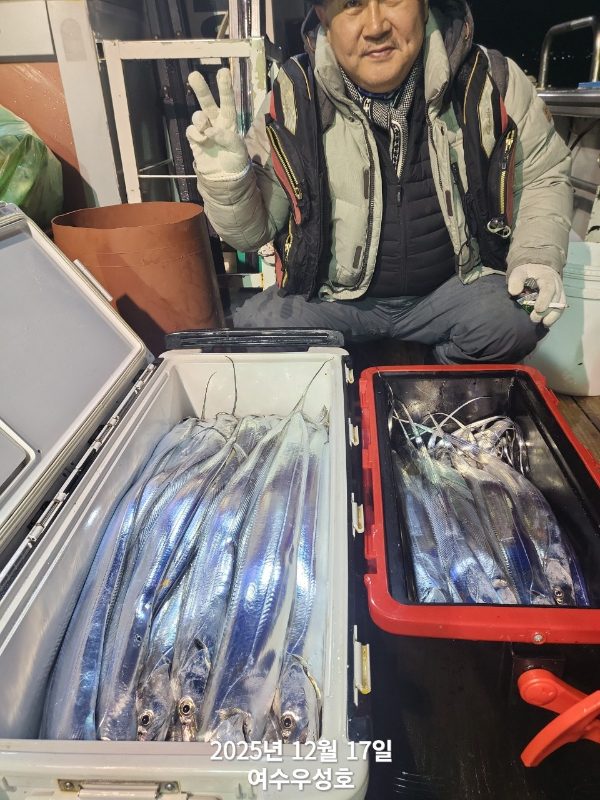 안녕하십니까 여수우성호입니다 1월15일 먼바다갈치(덤으로열기)2박 인원관계없이 정상출조합니다 현재 6자리여유 있습니다 대갈치 대박조황이 기대됩니다 조황사진은 지난번 갈치2박 입항 사진입니다 1월15~16일 갈치.열기 2박출조 6자리여유 1월17일 갈치열기12자리여유 1월18일 갈치열기14자리여유 1월19일 갈치열기16자리여유 1월20~21일 갈치 열기 2박3일출조 12자리여유 1월22일 갈치열기16자리여유 1월24일참돔타이17자리여유 1월25일 낮열기12자리여유