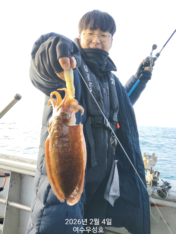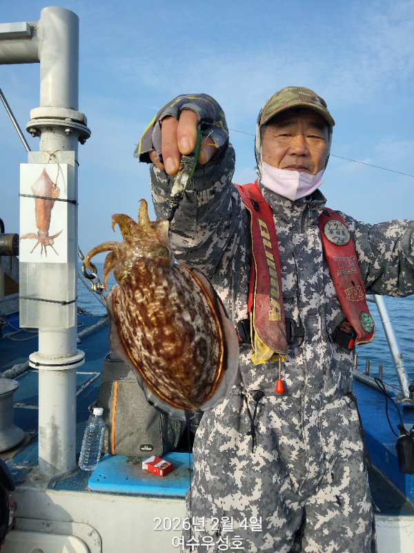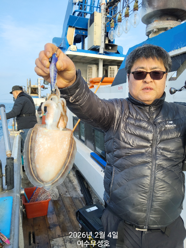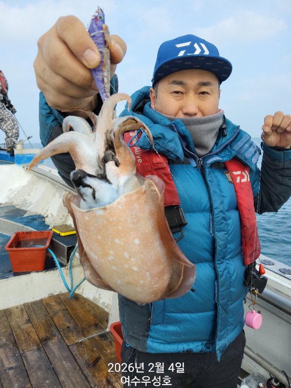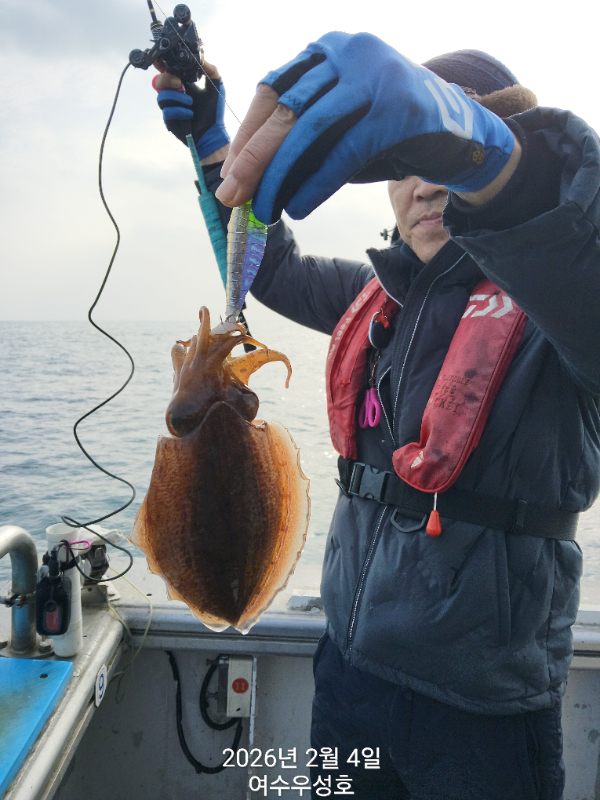 안녕하십니까 여수우성호입니다 갑오징어 실시간 조황소식입니다 소수인원 출조하여 현재 따복따복 잘 올라오고 있습니다 2월5일내일 탐사출조 선비10만원 모집합니다.18자리여유 있습니다 신발짝만한 갑오징어 마리수 조황이 기대됩니다 빨리들오셔서 찐한손맛을 느껴보시기 바랍니다