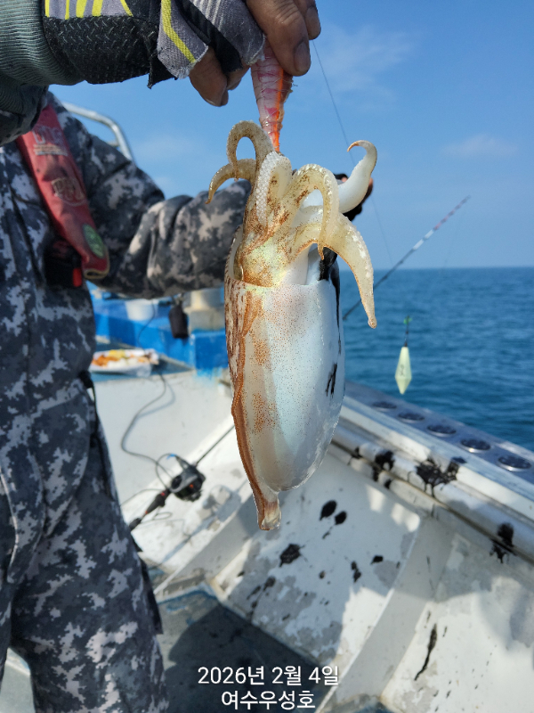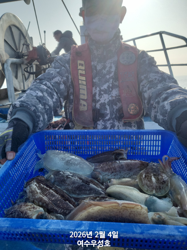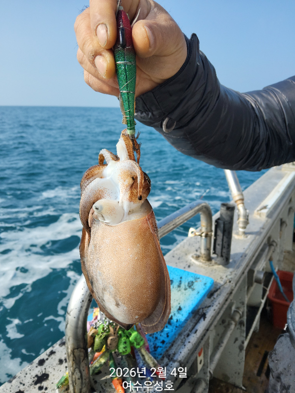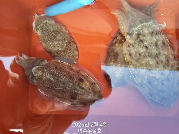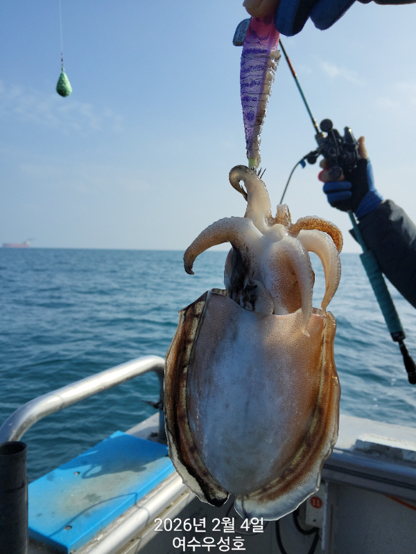 안녕하십니까 여수우성호입니다 2월4일입항 갑오징어 조황소식 입니다 (인원관계없이 정상출조합니다) 10명 소수인원 출조하여 아침부터 철수때까지 꾸준하게 나오고. 입질이 예민하여 올라오다가 떨어지면서 개인간 조과차이가 조금 나네요. 최고11수 싸이즈대박 입니다 오늘출조하신 조사님 감사하고요 수고많으셨습니다 2월5일내일 탐사출조 선비10만원 모집합니다.현재14자리여유 있습니다 5일내일은 신발짝만한 갑오징어 마리수 조황이 기대됩니다 빨리들오셔서 찐한손맛을 느껴보시기 바랍니다 ♡2월 참돔타이.열기.갑오징어 출조합니다 예약받습니다 *참돔타이낚시(17석) *갑오징어낚시(20석) *낮열기낚시(20석) ♡출조시간 새벽03시30분까지 오시고 04시출항
